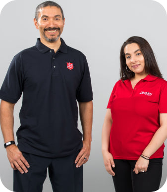 Polos will be embroidered with the red shield and your corps name below. Standard font and sizing will be used (as pictured). Longer corps names may need to use 2 lines. Logo with corps name will be about 3" on left chest. Lettering will be in white.
